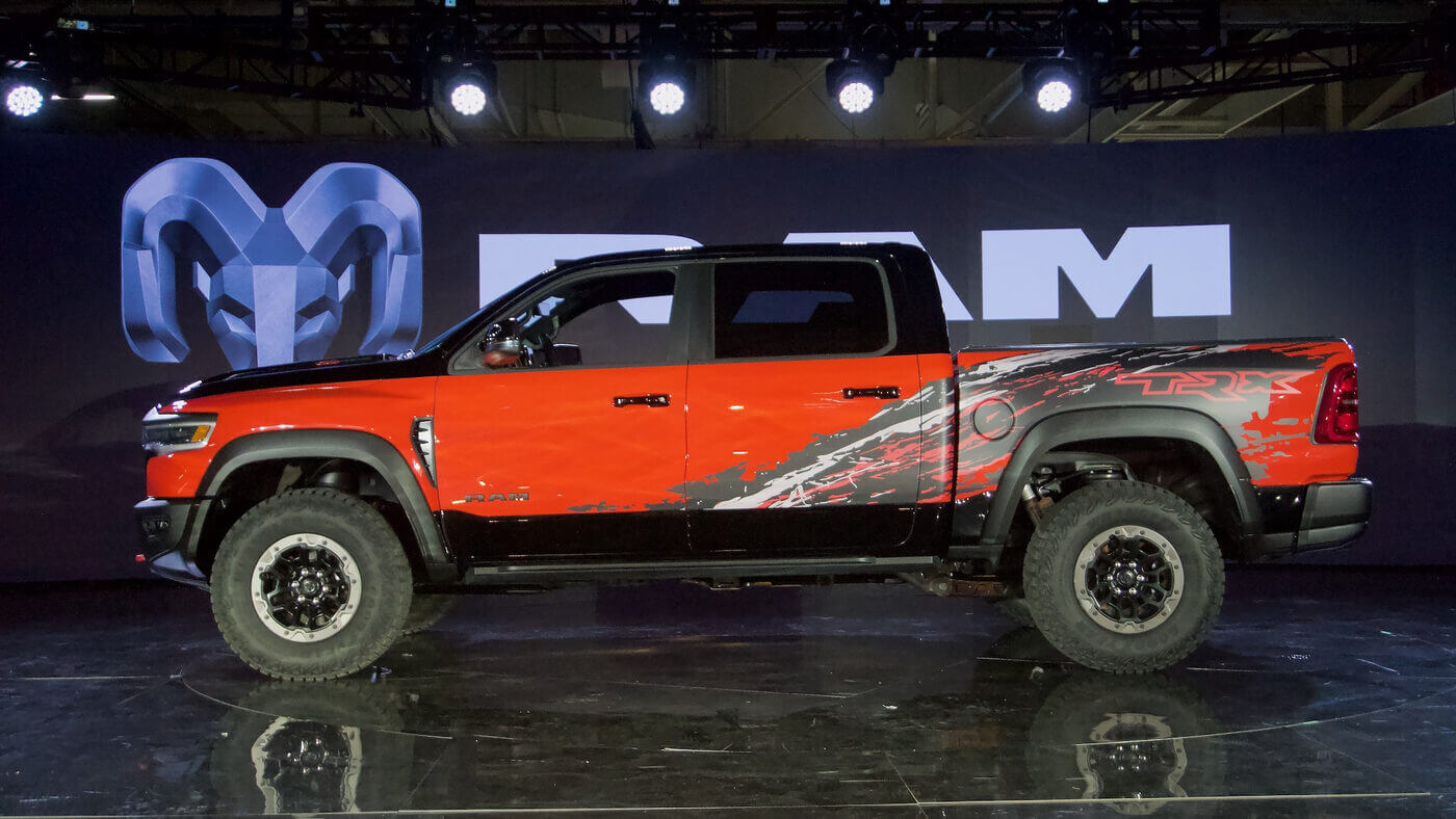 Le RAM TRX est présenté comme un pick-up américain atypique, animé par un V8 de 6,2 litres. La source avance un couple de 922 Nm et un 0 à 100 km/h annoncé en moins de 3,5 secondes, des chiffres qui placent d’emblée le modèle dans le registre des engins très performants.